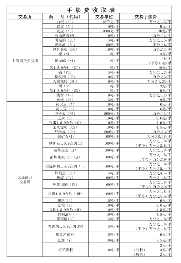 手续费公示(20180323)
