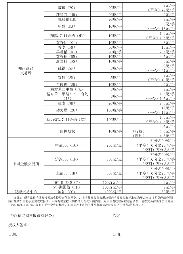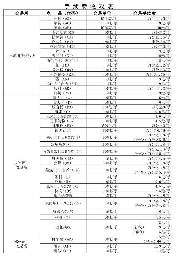 手续费公示(20180522)