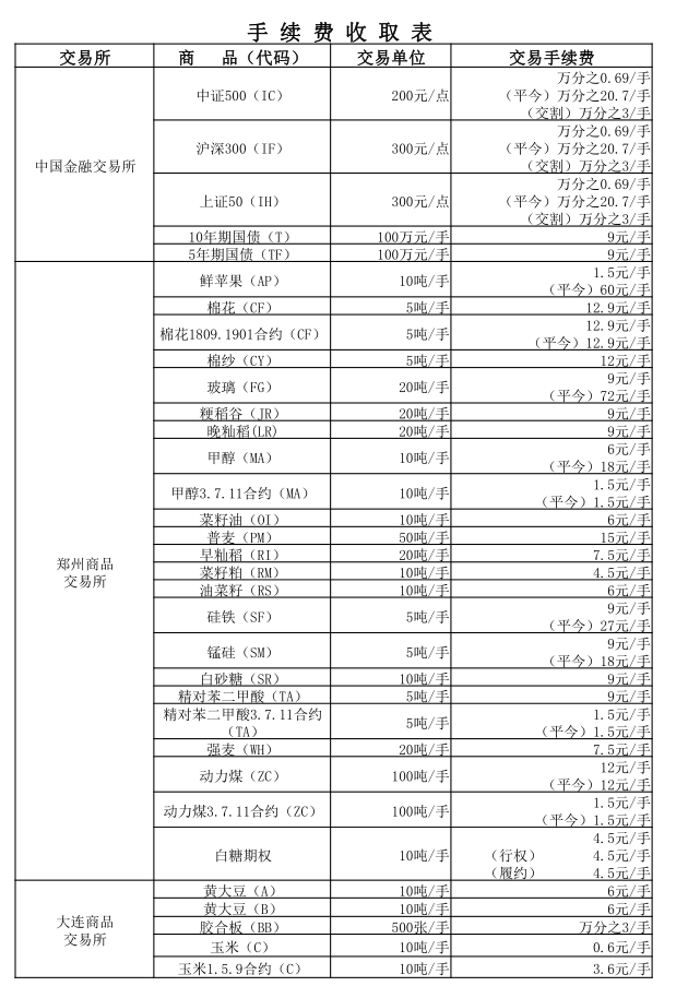 手续费公示(20180525)