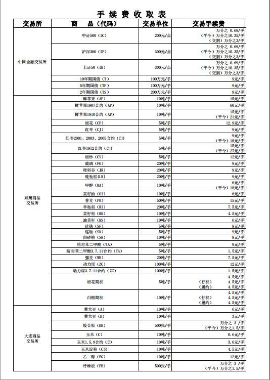 手续费公示(20190619)
