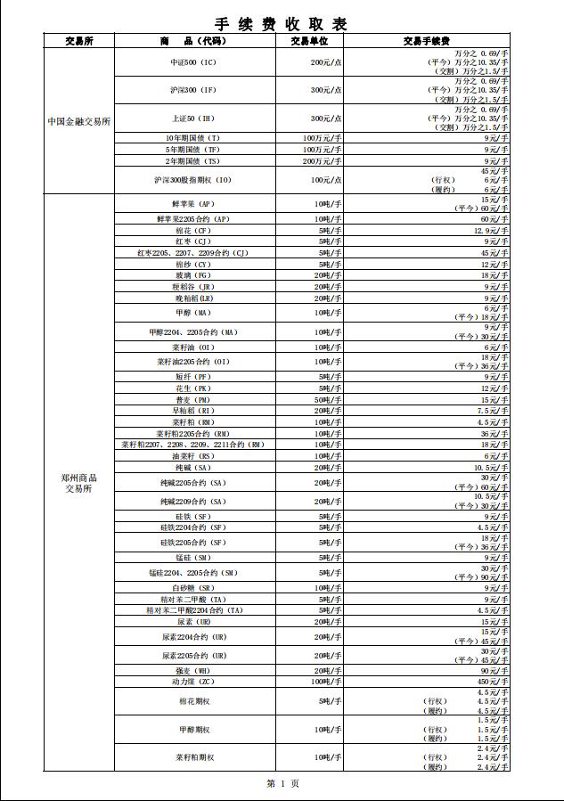 手续费(20220418)